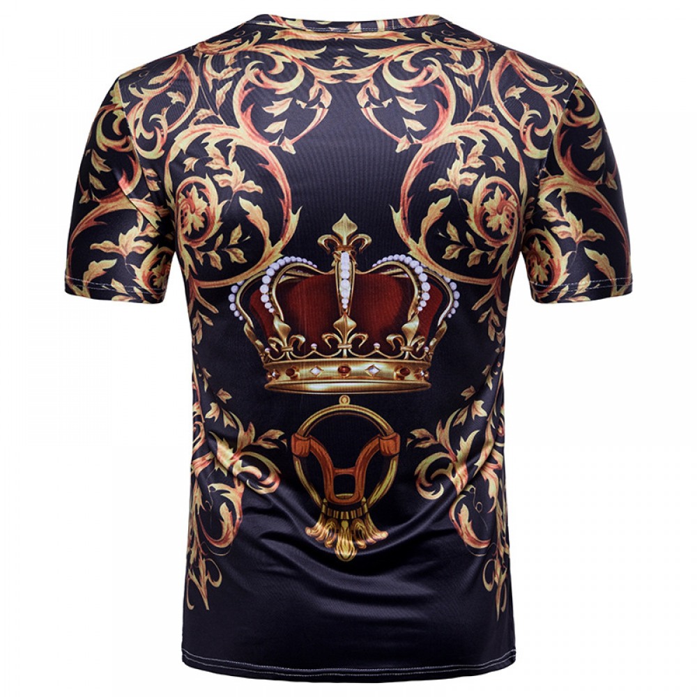 Men's 3D Shirt Palace Style Crown Print, Short Sleeve T-Shirt