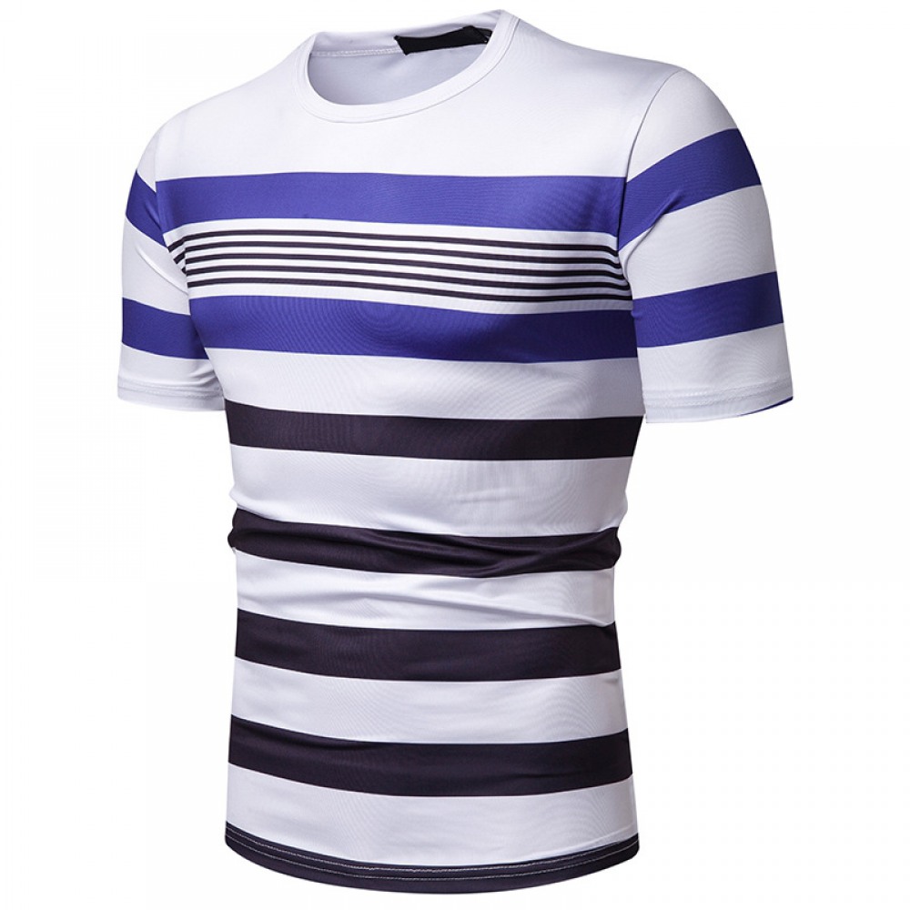 Men's Short-Sleeved T-Shirt Mens Contrast Striped Slim Casual T-Shirt