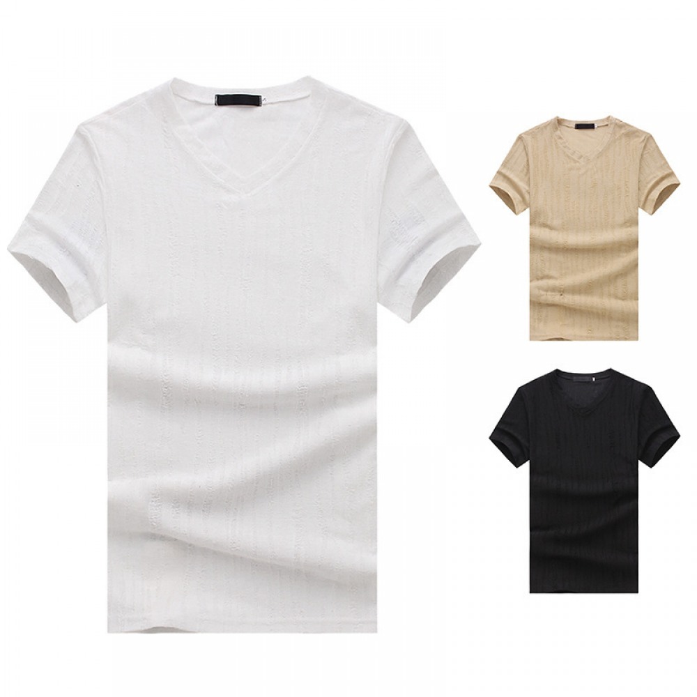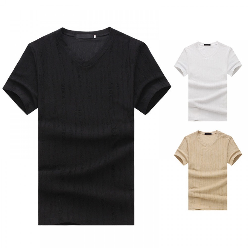 New Summer Men's Short-Sleeved T-Shirt Men's Contrast Striped Slim Casual T-Shirt