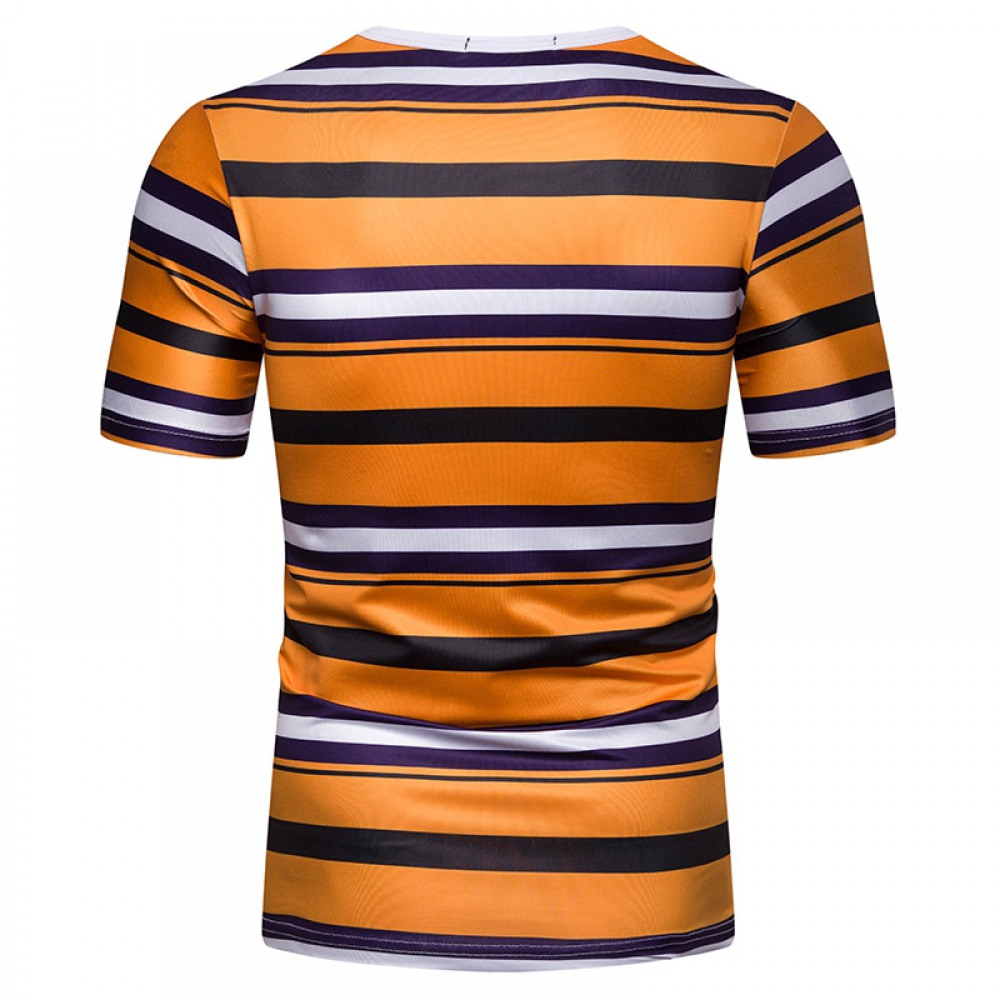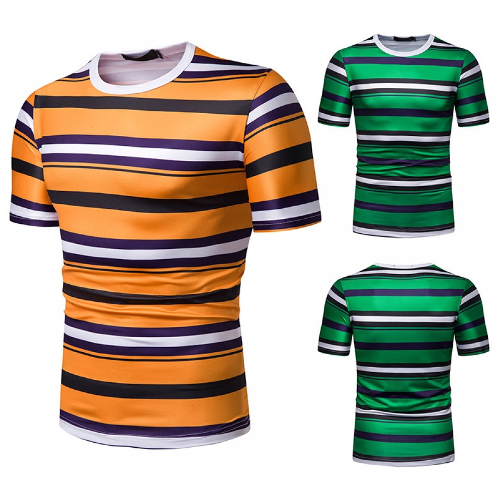 New Summer Men's Short-Sleeved T-Shirt Men's Contrast Striped Slim Casual T-Shirt