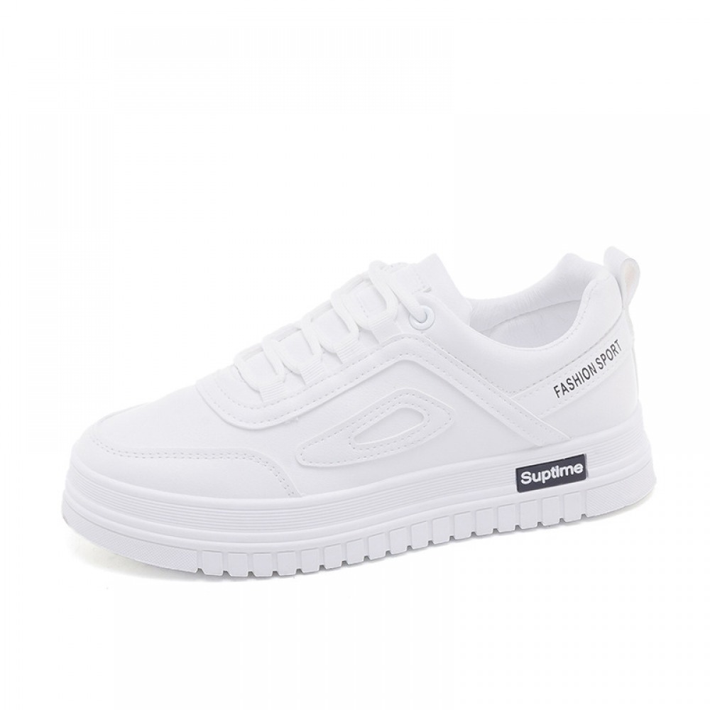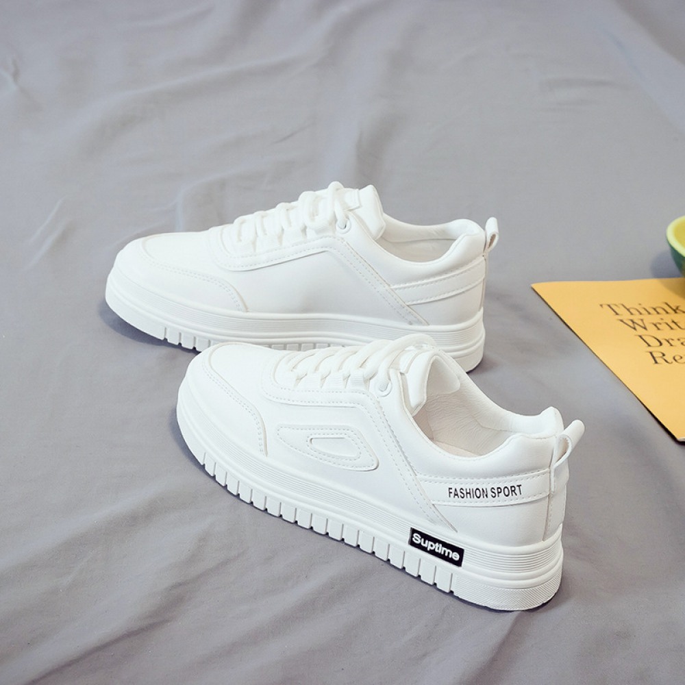 Basic White Flat Running Shoes Women's Lace-Up Platform Shoes