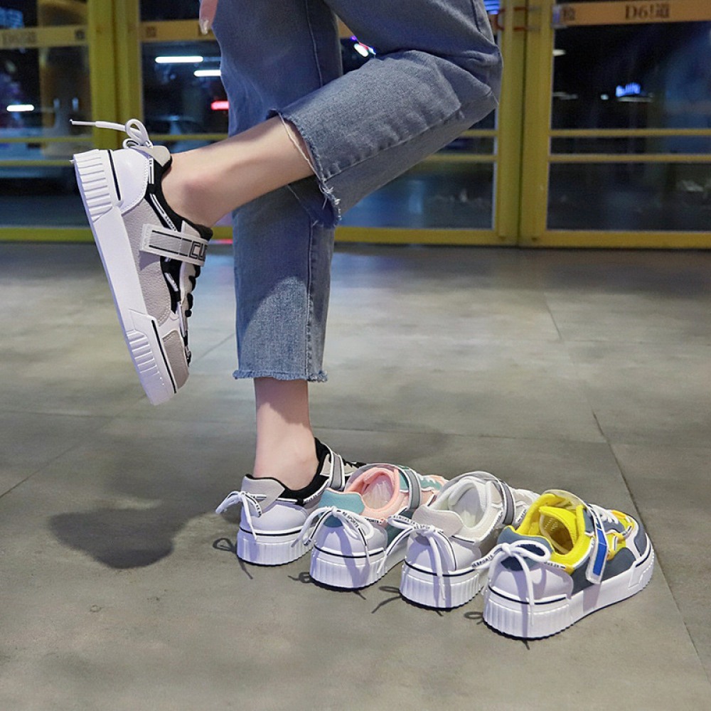 Spring White Running Board Shoes Lace-Up Flat-Bottom Breathable Casual Shoes