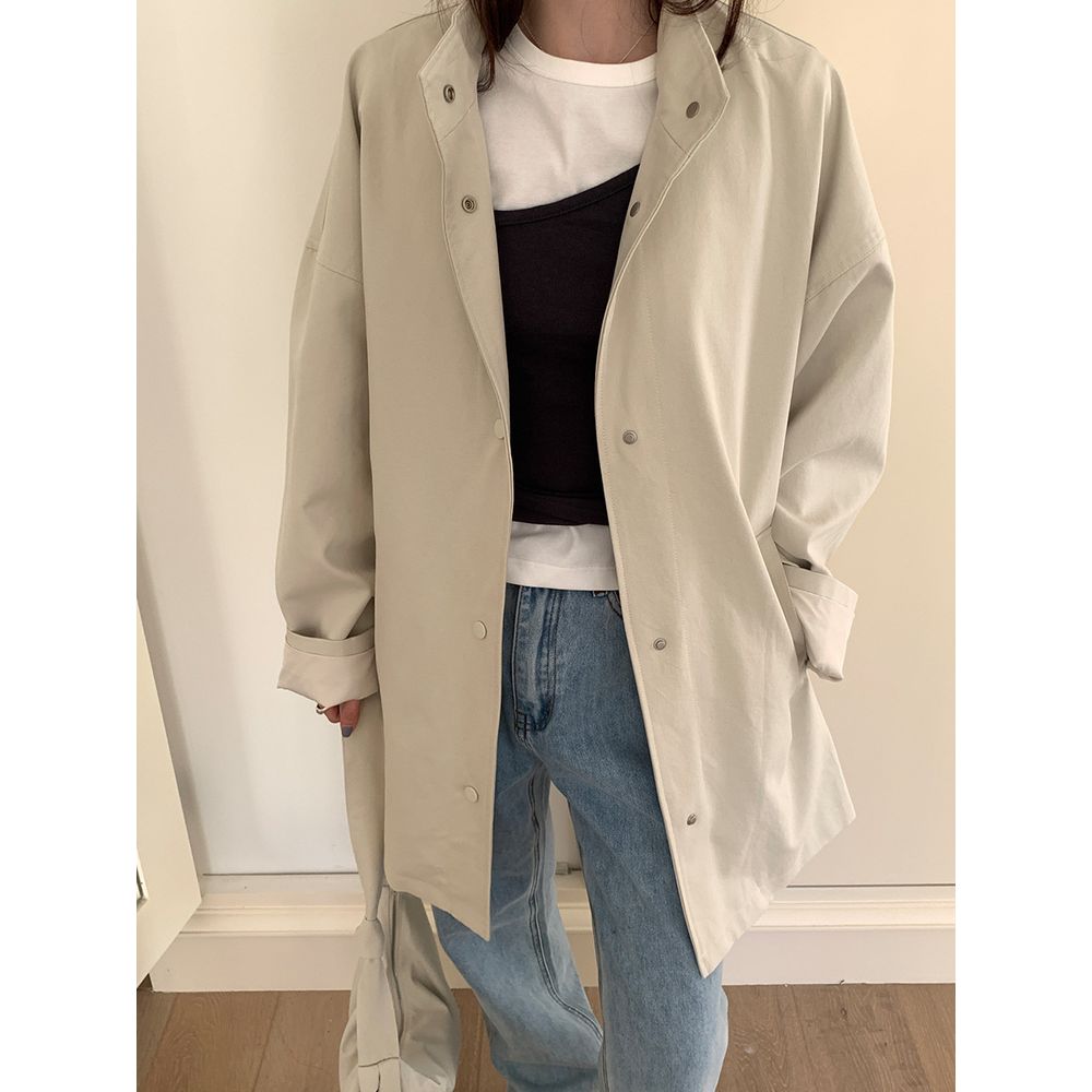 High-End Stand Collar Windbreaker Jacket Loose Coat