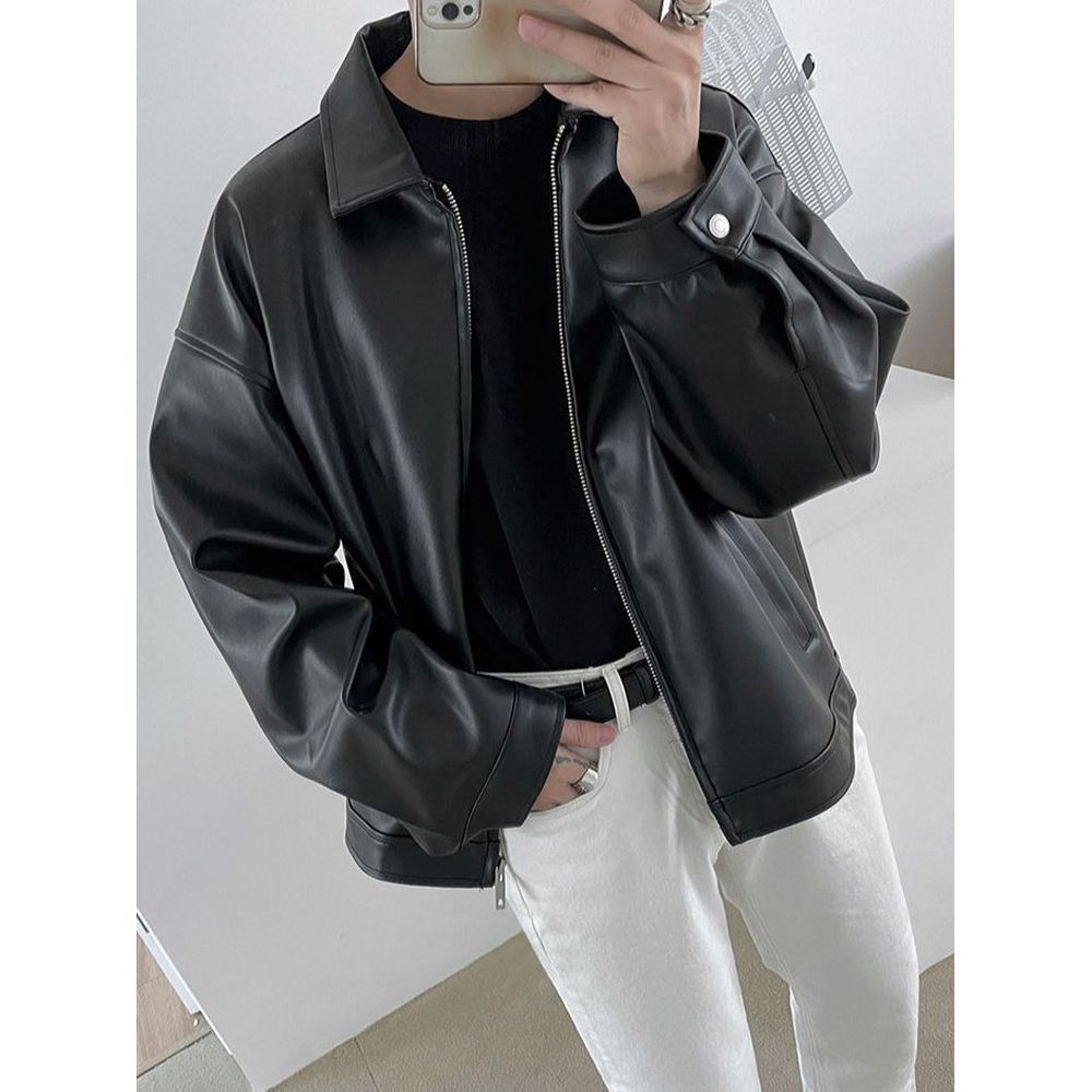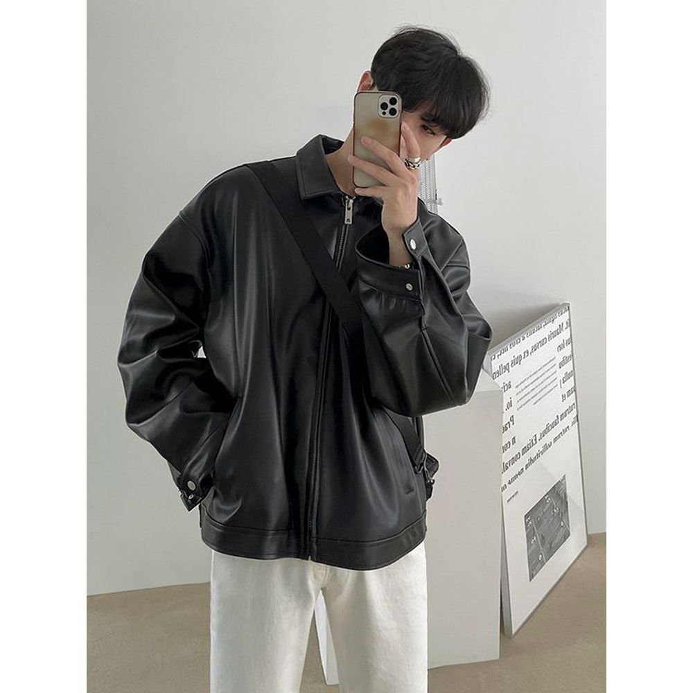 Pu Leather Jacket Men's Loose Casual Retro Parka