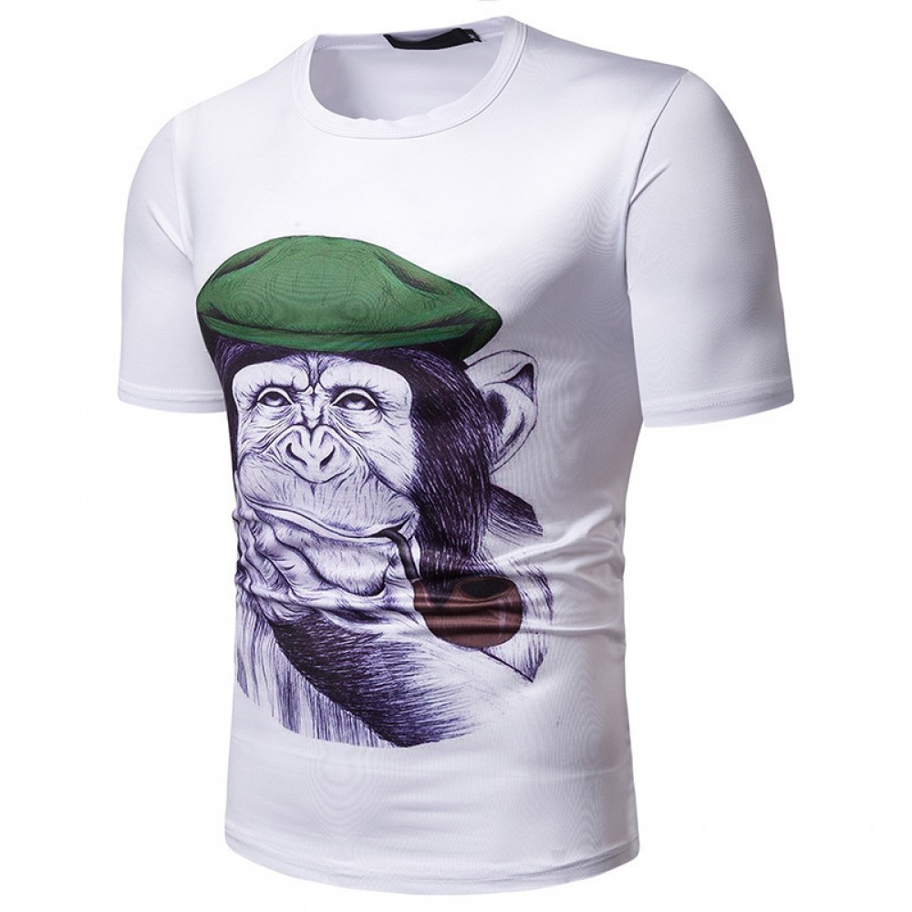 Men's Orangutan Head Print New Short Sleeve T-Shirt
