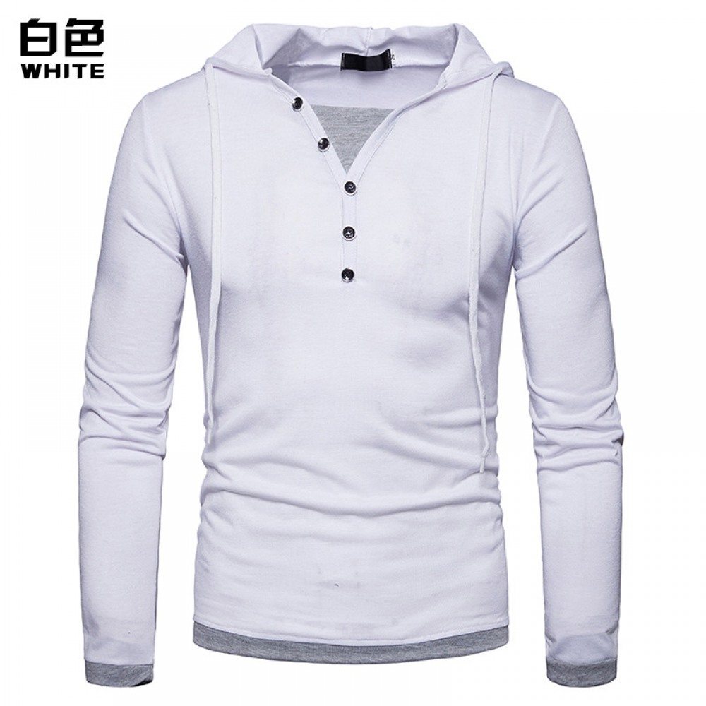 New Fashion Men's Hooded Long-Sleeved Stitching T-Shirt Sports Pullover Hoodie