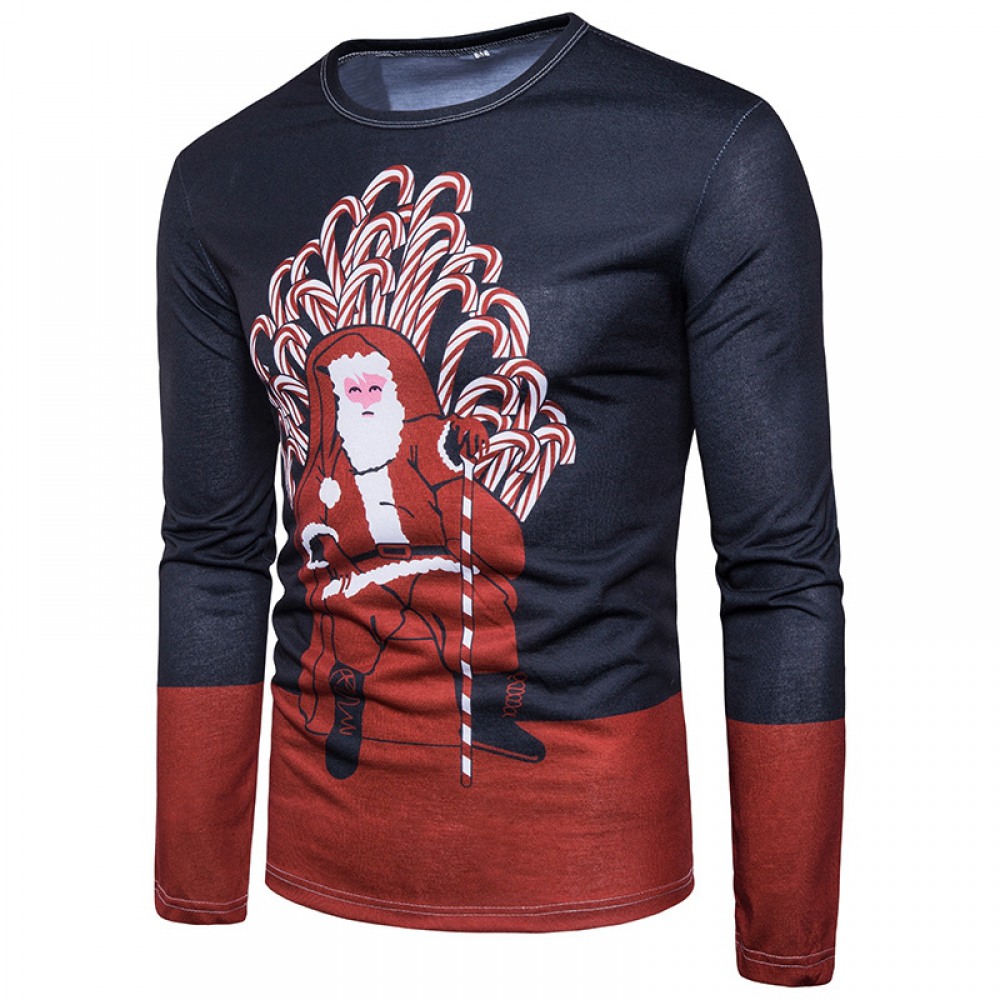 New Men's Fashion Santa Claus Hand-Held Color Stick Printing 3D Long-Sleeved T-Shirt